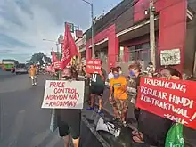 Protesters asserting for price control, lower prices, wage increase, and regularization of work.