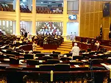 The Provincial Assembly of Khyber Pakhtunkhwa is a unicameral legislature of elected representatives of the Pakistani province of Khyber Pakhtunkhwa, which is located in Peshawar, the provincial capital. It was established under Article 106 of the Constitution of Pakistan,[1] having a total of 145 seats, with 115 general seats, 26 seats reserved for women and 4 reserved for non-Muslims.[2] The 11th Provincial Assembly of the Khyber Pakhtunkhwa was dissolved on 18 January 2023, and the province is set to elect a new legislature on 8 October 2023.