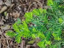 Prumnopitys andina, the lleuque or Chilean plum yew,[3] is an evergreen coniferous tree native to south-central Chile and a few areas in adjacent parts of westernmost Argentina from 36 to 40° South latitude. It lives on moderately wet soils, preferably on Andean slopes from 500–1,100 meters (1,600–3,600 ft).