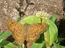 Pseudocoladenia dan, commonly known as the fulvous pied flat,[1] is an Indomalayan[2] species of butterfly in the family Hesperiidae. It is found from India[1] to southeast Asia.[3][4][5][6]