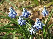 Pseudomuscari is a genus of bulbous perennials in the family Asparagaceae, subfamily Scilloideae.[1] They were formerly included in the genus Muscari (as the Pseudomuscari group, section or subgenus). Species of Pseudomuscari have flowers in shades of pale or bright blue, and are small plants with dense flower spikes or racemes. A feature which distinguishes them from Muscari is the bell-shaped flower which is not constricted at the mouth. One species, P. azureum, is popularly grown in gardens as an ornamental Spring-flowering plant.[2]