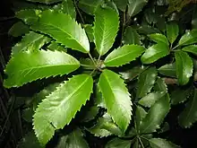 - ↑ Botanic Gardens Conservation International (BGCI).; IUCN SSC Global Tree Specialist Group. (2018). "Neopanax arboreus". IUCN Red List of Threatened Species. 2018: e.T135793264A135793266. doi:10.2305/IUCN.UK.2018-2.RLTS.T135793264A135793266.en. Retrieved 13 May 2023.