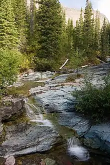 Ptarmigan Falls is a waterfall located in Glacier National Park, Montana, US. Ptarmigan Falls has a series of cascades and at least one drop of over 30 feet (9.1 m) as it descends downstream along Ptarmigan Creek. The falls can only be seen by hiking west on the Ptarmigan Trail from Swiftcurrent Auto Camp Historic District in the Many Glacier region of the park.[2][3]