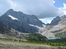 Like other mountains in Banff Park, the mountain is composed of sedimentary rock laid down during the Precambrian to Jurassic periods.[6] Formed in shallow seas, this sedimentary rock was pushed east and over the top of younger rock during the Laramide orogeny.[7]