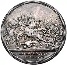 After several days of Roman provocation that produced only skirmishes,[48] the Suebi responded with a sudden attack that preempted standard Roman tactics; Caesar says that the army was unable to release a volley of javelins (pila),[49] which ordinarily would have been preceded by a cavalry skirmish. Instead, Crassus and the auxiliaries seem to have remained on the periphery of action.[50] Caesar gives Crassus credit for accurately assessing the status of the battle from his superior vantage point and for ordering in the third line of infantry at the critical moment. Initiative is implied. After the Suebi were routed, the horsemen pursued those who escaped, but failed to capture Ariovistus.[51]