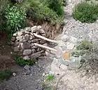 From there, on the opposite side of the river at a non-marked and not easily identifiable location (position: 22°50′24.5″S 65°13′33″W / 22.840139°S 65.22583°W / -22.840139; -65.22583 (start of trail to Pueblo Viejo)), a steep walk of about half an hour leads up to the village.