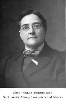 Puella E. Dornblaser (October 7, 1851 – March 17, 1904) was an American newspaper editor and temperance activist based in Pennsylvania. Her temperance education and missionary work were focused especially in immigrant and mining communities.