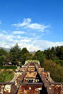 Railroad Puente Alto (High Bridge) to El Volcan (the Volcano) and its associated infrastructure were declared a National Historic Landmark by the Ministry of Education Decree No. 432 in 1991.[10] From that date, a series of restorations of the tracks and stations were performed. The 21.12.2002 agreement between the Chilean Army, the National Tourism Service (SERNATUR), the National History Museum, the Ministry of National Heritage and the National Monuments Council, was signed for the implementation of a restoration project on the grounds of the El Manzano station, in order to build a cultural center that would include the Museum of Military Railways.[10] By the end of 2004, after the closure of Puente Alto Regiment, the steam locomotive "Panchita", together with some cars and trucks, was moved to El Melocotón station, where they are safely stored.