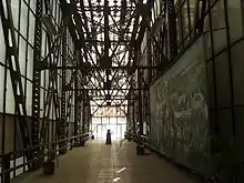 After staying abandoned for 30 to 40 years, the government of Ecatepec decided to transform the bridge into a museum. Bueno Herrera was authorized to coordinate the restructuring and renovation works. The museum was opened on 17 August 2000 as the Centro Cultural Puente del Arte (Art Bridge Cultural Center) and exhibited contemporary artworks and held cultural workshops. As time passed, the museum declined; due to crime in the area, vandalism, and the lack of maintenance of the bridge, it was closed in 2016.[1] When it was adapted into a museum, the structure was fitted with a frame of metal tubes to support polycarbonate sheets and tiles were added to the floor.[2]