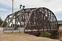 The Puente Ingeniero Ernesto Uriegas, best known as the Puente de Fierro (English: Iron Bridge), is a twin-span bridge found along Vía Morelos Avenue, in San Cristóbal, Ecatepec de Morelos, State of Mexico. The bridge was built to cross the Gran Canal del Desagüe (Grand Sewage Canal) that surrounds Mexico City. The origins of the construction of the bridge tend to differ depending on the source as there are few records of the bridge beyond undated pictures. One of the stories says that it was completed in 1896 to be operated by the National Railroad Company. There is also a persistent legend about its origins that mentions that Gustave Eiffel, at the request of president Porfirio Díaz, designed the bridge in the 1870s. It was later adapted into a provisional vehicle bridge and eventually replaced with an adjacent larger vehicular bridge. In 2000, the local government remodeled the space into a museum, which would last 16 years. Since then, the bridge has been abandoned and has received partial maintenance.