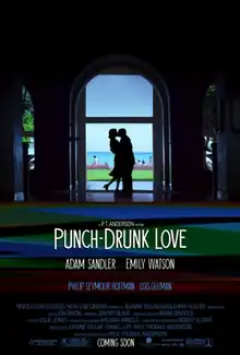 Punch-Drunk Love is a 2002 American absurdist romantic comedy-drama film written and directed by Paul Thomas Anderson, and starring Adam Sandler, Emily Watson and Philip Seymour Hoffman. It follows an entrepreneur with social anxiety who falls in love with his sister's co-worker. The film was produced by Revolution Studios and New Line Cinema, and distributed by Columbia Pictures.