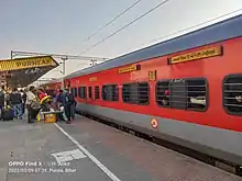Purnea Junction railway station (station code:- PRNA), is the railway station serving the city of Purnea in the Purnea district in the Indian state of Bihar. It is a A category railway station of Katihar railway division in Northeast Frontier Railway.[2]