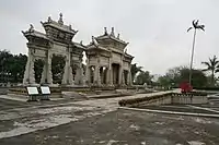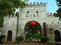 Qianshan's Meixi Village is the home to the Meixi Royal Stone Archways. The three engraved granite archways were built by order of the Guangxu Emperor in 1886 and 1891 in honor of Chen Fang (t , s , Chén Fāng) or Chun Afong, a native of Meixi who served as China's first consul to Hawaii and became a prominent philanthropist. It is surrounded by a 126,000 m2 (31-acre) park[19] covering the old Chen estate, expanded by Chen's son Tony (t , s , Chén Xírú),[20] and its gardens.[21] The site also houses the Waxworks Hall of Historical Figures of Zhuhai and a folk art exhibition.[22][21]