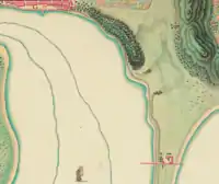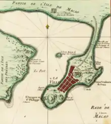 Qianshan was formerly a separate village, first settled under the Southern Song in AD 1152 (Shaoxing 22)[9] to produce salt from the Qianshan River.[10] The location once overlooked the inner harbor of Macao, whose border wall lay 3 kilometers (2 mi) to its southwest[2] and main settlement about 3 km farther.[11] With the Portuguese developing a permanent enclave there during the late Ming, Qianshan—being the Chinese settlement nearest to its peninsula's northern border—was turned into a military outpost in 1621.[4] By 1640, it comprised a 500-man garrison.[4]