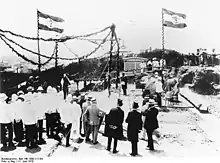 On July 23, 1896, the German navy Iltis gunboat was hit by the storm and sunk in the waters of the Yongluo Island in Rongcheng, Qingdao. The German navy believed that the lack of an accurate weather forecast was one of the reasons for this shipwreck.[4] In 1898, German geographer Ferdinand von Richthofen proposed in his book Shandong and its portal Jiaozhou Bay (German: Schantung und seine Eingangspforte Kiautschou) to repurpose the Jiaozhou Bay Leased Territory of Qingdao into a scientific research centre with an observatory to observe marine weather.[5]