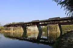 Qinghua Rainbow Bridge (simplified Chinese: 清华彩虹桥; traditional Chinese: 清華彩虹橋; pinyin: Qínghuá Cáihóng Qiáo) was a large stone beam bridge in the town of Qinghua, Wuyuan County, Jiangxi, China.[1][2] The bridge went across the Le'an River.[1][2] The bridge was 140 m (459 ft) long and had 3.1 m (10 ft) wide, with 4 piers and 5 bridge openings.[1][2]