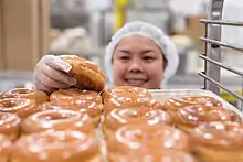 The bakery produces over 45 varieties of donuts,[19][20] including classic cake donuts and yeast raised varieties.[21][22] It also offer cookies, muffins, pastries, and other baked goods.[23][24][25][26]