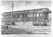 In March 1882, the QMO&OR western division (Montreal-Ottawa) was sold for $4 million to Canadian Pacific Railway (newly formed on 15 February 1881).[12][13] A new Montreal terminal was then built at Dalhousie Square, from which the first Canadian transcontinental departed on June 28, 1886.[14] The same year, the Quebec-Montreal section was sold, for $4 million, to a group led by Louis-Adélard Sénécal, officer of the QMO&O ; there was a political scandal and Sénécal rapidly sold his shares, at a large profit, to the Grand Trunk Railway which now had the monopoly on the south and north shores of the St-Lawrence river; in 1885, the Federal Government bought the section and sold it back to the CPR. The CPR did not meet all expectations of the Quebec bourgeoisie: the company chose Montreal as its headquarters and expanded the railway east through the Eastern Townships and Maine.[3] In 1997, CPR sold its railway north of the St-Lawrence river to Quebec Gatineau Railway.