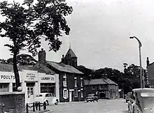 Queen's Square in the mid-20th century, looking east to the junction of Chapel Street and Higher Green. None of the buildings on the left of the picture remain
