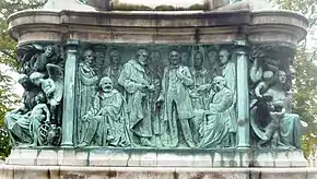 The frieze on the east face of the monument depicts thirteen prominent Victorians from the fields of arts and culture. They are, from left to right: