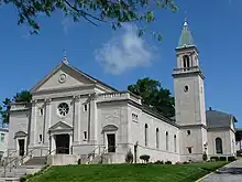 The Queen of the Holy Rosary Memorial Shrine is a Catholic church in the Diocese of Peoria It is located at 529 Fourth Street in La Salle, Illinois and is dedicated to the Blessed Virgin Mary in memory of all living and deceased military veterans who have served in the United States Armed Forces. It was deemed worthy to be elevated to a Diocesan Shrine on November 7, 2007, by Bishop Daniel R. Jenky, and dissolved as a parish.[1][2] He has granted a partial indulgence to those making a pious pilgrimage to the Shrine. The Shrine complex consists of the church, the rectory and a school building.