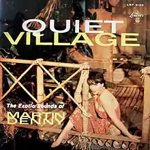 Quiet Village: The Exotic Sounds of Martin Denny was the eighth album by Martin Denny. Released in the summer of 1959, the monophonic version of the album (LRP 3122) reached No. 21 on the Billboard monophonic album chart in November 1959,[2] and the stereophonic version (LST 7122) reached No. 12 on the magazine's stereophonic album chart in January 1960.[3]