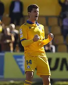 ![]() Quini celebrates a goal for Alcorcón in 2012 | |||
