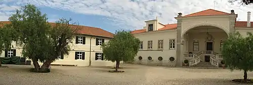 The estate, which corresponds to a great former noble residence, is located on 7 hectares along the coast of Carcavelos, in a locality associated with various pre-historic vestiges.[1] The group of buildings are located in an isolated courtyard in a walled compound.[2][1] Its access is made along an alameda defined by a roadway lined by walls and trees from north to south.[2]