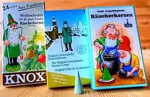 A Räucherkerze, Räucherkerzchen or Räucherkegel (literally "smoking candle", "little smoking candle" or "smoking cone") is an incense cone burned at Christmas time in Germany and in the Czech Republic in order to create pleasant scents around the house.