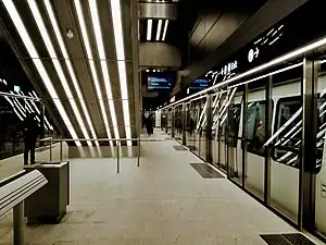 Rådhuspladsen station (Danish pronunciation: [ˈʁʌðhusˌpʰlæsn̩], lit. City Hall Square) is an underground Copenhagen Metro station located on City Hall Square in central Copenhagen, Denmark. The station is on the City Circle Line (M3 and M4), between Gammel Strand and Copenhagen Central Station, and is in fare zone 1.