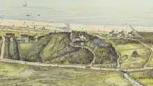 Henri Odewahn, one of the owners of C. J. Carøe, a leading Danish importer of tea and spices, purchased a 7 hectares piece of land at the site in 1914.[1] A country house designed by Povl Baumann was completed on the property the following year.[2] Based at Strandgade 36 in Copenhagen,[3] C. J. Carøe's Cingalla Tea was one of the leading tea brands on the Danish market at the time.[2] In 1907, Odewahn had also established a brand of cherry liqueur under his own name.[4] He purchased the property at Ny Kongensgade 3 in 1917 but only kept it for four years.[5]