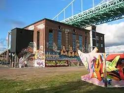 Röda Sten Konsthall[1][2] is a contemporary art center located in the district of Majorna under Älvsborg Bridge in Gothenburg, Sweden. Konsthall roughly translates to "Art Gallery" however the organization is much more similar to a German Kunsthalle. Röda Sten Konsthall is an exhibition space for a diverse range of cultural events and art exhibitions,[3][4] is home to Gothenburg's only legal graffiti wall "Draken"[5][6][7] and hosts a rich program of educational activities[8] for all ages.
