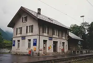 Rüti GL railway station is a railway station serving the village of Rüti in the municipality of Glarus Süd in the Swiss canton of Glarus.The station is situated on the Weesen to Linthal railway line, and served by the hourly Zürich S-Bahn service S25 between Zurich and Linthal.[1][2][3][4]
