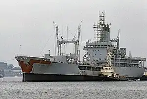 One of Green Rover's first duties was to attend Navy Days at Chatham. In September 1969 she towed the disabled RFA Appleleaf from the North Atlantic to Devonport. In September 1971 she carried out deck landing trials with the new Harrier jump jet while moored at Greenwich Pier on the Thames. Green Rover was decommissioned in 1992 from the Royal Fleet Auxiliary.[2]
