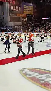 The Tigers moved into the 4,300-seat Gene Polisseni Center for the 2014–15 season.[17] Their first season in the Polisseni Center saw the Tigers finish with a 20–15–5 overall record. They played in the Mariucci classic, losing both games against number-9-ranked Massachusetts–Lowell and number-8-ranked Minnesota. In the playoffs, they swept the Air Force Falcons in the second round after receiving a bye in the first round. The Tigers went on to defeat Canisius in the semifinals of the AHA Tournament by a score of 2–1 and the Meryhurst Lakers in the championship game by a score of 5–1 to win the Atlantic Hockey championship and advance to the NCAA Division I tournament for the second time in program history. The Tigers knocked off the Minnesota State Mavericks in the first round of the NCAA tournament 2–1, becoming the first #16 seed to defeat the top overall seed since the 16-team format was implemented in 2003.[18] There would be no repeat, however, of the 2009–2010 run to the Frozen Four as the Tigers fell to the University of Nebraska Omaha Mavericks in the following round by a score of 4–0, ending their playoff run.[19] In the 2015–16 season, the Tigers lost home ice in the first round to Mercyhurst as they were swept in their last two games of the regular season on home ice; however, the Tigers returned the favor in the postseason by sweeping the Lakers on the road. The Tigers once again were in the AHA tournament and faced the Air Force Falcons once again. The Tigers trailed 1–0 heading into the third and it would appear that they were headed to another shutout loss, but Andrew Miller scored with under 3 minutes left in the third to even the score. In overtime, the Tigers completed their comeback winning 2–1. The Tigers would then claim the Atlantic Hockey championship once again, convincingly defeating the Robert Morris Colonials by a score of 7–4, to advance to the NCAA Division 1 tournament for the second consecutive season.[20] The team's playoff run ended in the first round of the east regional in Albany, New York by the first-ranked Quinnipiac Bobcats by a score of 4–0.[21] The 2016–2017 season was a down year for the Tigers as they flirted with the .500 mark within their conference and were unable to defeat any non-conference teams. They faced Niagara in the first round of the playoffs losing a close one 5–4 in game 1 but shutting them out 5–0 in game 2 setting the stage for the deciding game 3. They were unable to complete the comeback as the Purple Eagles ended the Tigers' season winning 4–1.