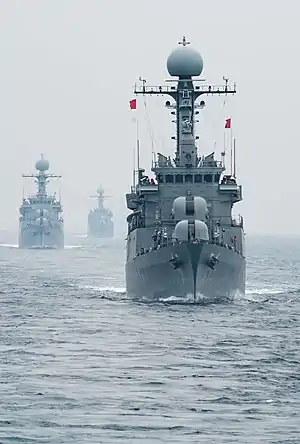 The Pohang class is a series of corvettes built by different Korean shipbuilding companies. The class consists of 24 ships and some after decommissioning were sold or given to other countries. There are five different types of designs in the class from Flight II to Flight VI.[1]