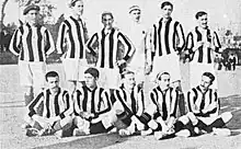 At the turn of the decade Sociedad Gimnástica, propelled by the likes of José Carruana, the Uribarri brothers (Eulogio and Ricardo) and Sócrates Quintana,[5] began to disrupt the monopoly of Madrid FC and Athletic Madrid, competing head-to-head with them and winning the Centro championship on four occasions, three of which in a row between 1910 and 1912 and a fourth in 1913–14.[6] As the champions of Madrid, Sociedad Gimnástica represented the capital in the national cup twice, reaching the final in the 1912 Copa del Rey, which ended in a 0–2 loss to FC Barcelona.[7]