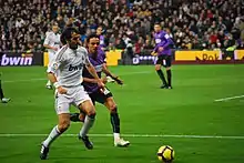 A prolific goalscorer and a highly creative forward, Raúl is regarded as one of the greatest and most consistent forwards of his generation.[76][77][78] Wearing the number 7 jersey for most of his club and international career, he was capable of playing anywhere along the front line, although he was primarily deployed as a centre-forward, or as a supporting striker.[79] He was also capable of playing as a number 10 behind the forwards,[80] and was even used out of position as a left winger by manager Fabio Capello during the 1996–97 season.[81] Raúl was a quick, left-footed player, who was capable of scoring both in and outside the penalty area with his accurate and powerful shot,[79] and had a penchant for scoring goals from chips.[82] He possessed excellent ball control, vision and technical ability, and was effective in the air as well.[79]
