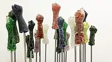 Owens' work has been discussed in the New York Times,[9][10] Art in America, Hyperallergic,[11] Urban Glass,[12] Sculpture Magazine,[13] and the Village Voice,[14] among other publications. She has received grants from the Joan Mitchell Foundation, the Pollock-Krasner Foundation, the Harpo Foundation,[15] and the United States Embassy in Russia.