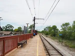 Racine Avenue is a commuter rail station along the Blue Island Branch of the Metra Electric line in the West Pullman neighborhood of Chicago, Illinois. The station is officially located at Racine Avenue, South of 120th Street, and is 17.0 miles (27.4 km) away from the northern terminus at Millennium Station.[2] In Metra's zone-based fare system, Racine Avenue is in zone C. As of 2018, Racine Avenue is the 221st busiest of Metra's 236 non-downtown stations, with an average of 28 weekday boardings.[1]