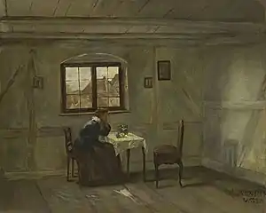 Following the rise of the Nazis, his older, sometimes mythological styles found favor with the party's supporters, and he was commissioned to do several female portraits. These included Winifred Wagner, Cosima Wagner and Emmy Göring.[5] He was awarded the Goethe-Medaille für Kunst und Wissenschaft in 1940, and his works were featured at the Große Deutsche Kunstausstellung of 1941. Hitler bought one for 60,000 .[4] Shortly after, he moved to the safety of a remote location in Bavaria where he died, ten years later.