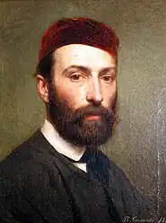 There, he studied drawing with Giuseppe Sogni, and painting with Luigi Sabatelli. As part of his instruction, he helped his teachers create frescoes at churches in Novara and Valmadrera.[1] In 1846, he painted two muses in the foyer of the Teatro di Mortara. He completed his studies in 1850.[2]