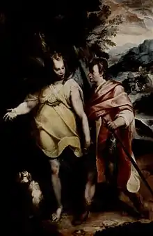Taken together, his work in Rome displays an eclectic approach, often though not always assuming stylistic traits of the late Taddeo Zuccari (he sometimes worked alongside Federico Zuccari, Taddeo's younger brother).[2][4] The compositional felicities of his depictions of Tobias and the Angel and Diana and Acteon, two of his surviving oil paintings, suggest an ideal stylistic connection with Correggio.[5]
