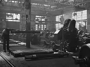 The network of railways grew rapidly during the second half of the 19th century. By 1880 there were approximately 400,000 people (almost exclusively male) employed in the railroad industry of the United States — about 1 worker out of every 40.[1] While the largest part of these were involved in the construction and maintenance of roadbeds and rails, the second largest group of these employees were the shopmen charged with the construction and service of rolling stock.[2] Approximately 20% of railroad employees in this period worked as shopmen, according to the investigation of one leading scholar.[2]