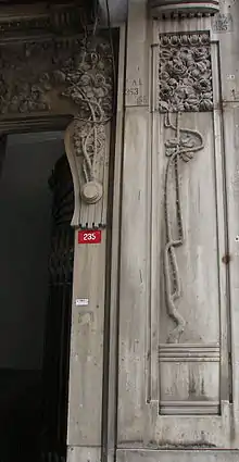 A floral front door detail in Casa Botter before conservation(Botter Apartmanı, 1900–1901) on İstiklal Avenue in Beyoğlu, Istanbul.