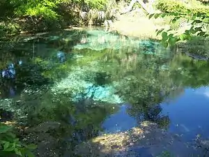 Rainbow Springs State Park is a Florida state park located on U.S. 41, 3 miles (5 km) north of Dunnellon, Florida. It comprises 1,459.07 acres (5.9046 km2) upland (which includes around 100 acres (0.40 km2) of wetlands) and 12.83 acres (51,900 m2) submerged. The most significant natural feature is the first-magnitude headspring basin, which produces up to 600,000,000 US gallons (2,300,000 m3) of fresh water per day, forming the Rainbow River. The looking-glass waters of Rainbow Springs come from several vents, not one large bubbling spring. The river itself supports a wide variety of fish, wildlife, and plants, many within easy viewing by visitors. In total, the park contains 11 distinct natural communities, including sandhills, flatwoods, upland mixed forests, and hydric hammocks.