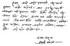 As gratitude towards Tagore's for visit in the hospital, Rajanikanta wrote a letter and another poem, "এই মুক্ত প্রাণের দৃপ্ত বাসনা তৃপ্ত করিবে কে ", and sent to Bolpur. Tagore wrote a letter to him on 30 July. In this, he appreciated Sen for his literary talent. During this period, he also composed a few Agamani-Vijaya songs. He died on 13 September 1910 in Kolkata.[1]