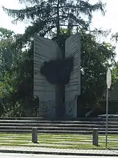 Following the joint German-Soviet invasion of Poland, which started World War II in September 1939, the village was occupied and annexed by Nazi Germany. In connection with the construction of the Auschwitz II-Birkenau death camp in nearby Brzezinka, in 1941, the occupiers expelled the entire Polish population of the village, which was initially deported to the nearby Pszczyna County, and afterwards either enslaved as forced labour or deported to the General Government in the more eastern part of German-occupied Poland.[4] Vacated buildings were partially demolished, and a subcamp of the Auschwitz concentration camp was established in the village.[5] Men and women of various nationalities and ethnicities, initially mostly Polish, but later also Jewish, Russian, French, Yugoslav and German, were held in the subcamp as forced labour.[5] On January 18, 1945, the subcamp was dissolved and the prisoners were sent on a death march towards Wodzisław Śląski, from which they were eventually deported to the Ravensbrück concentration camp in Germany.[5] After the war, the village was restored to Poland.