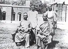 Direct Disciples of Sri Ramakrishna in Kankhal Sevashrama. Swami Brahmananda and Swami Turiyananda (both sitting), Swami Shivananda (standing)