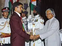 ![]() Kumar (left) receiving Arjuna award in 2006 from president A. P. J. Abdul Kalam | |||||||||||||||||||||
